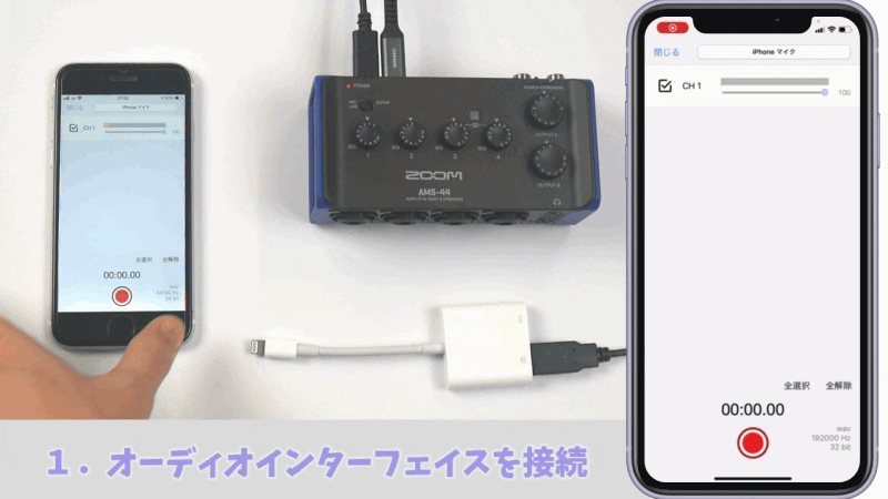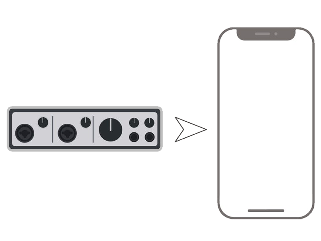お手持ちのオーディオインターフェイスを端末に接続してください