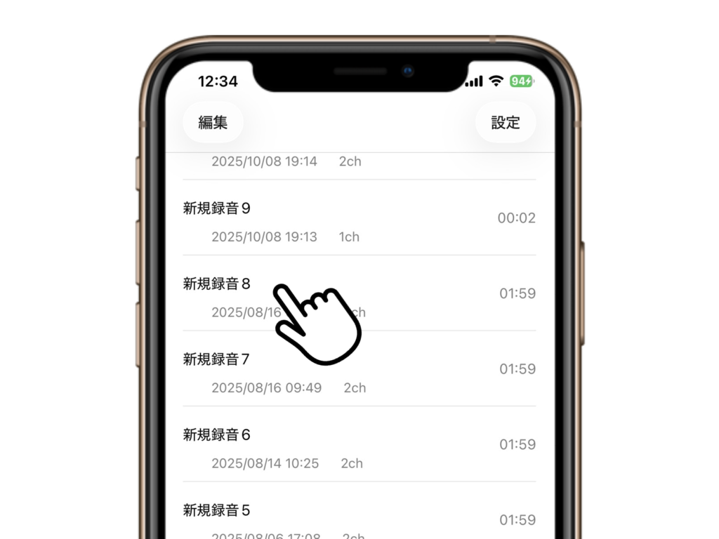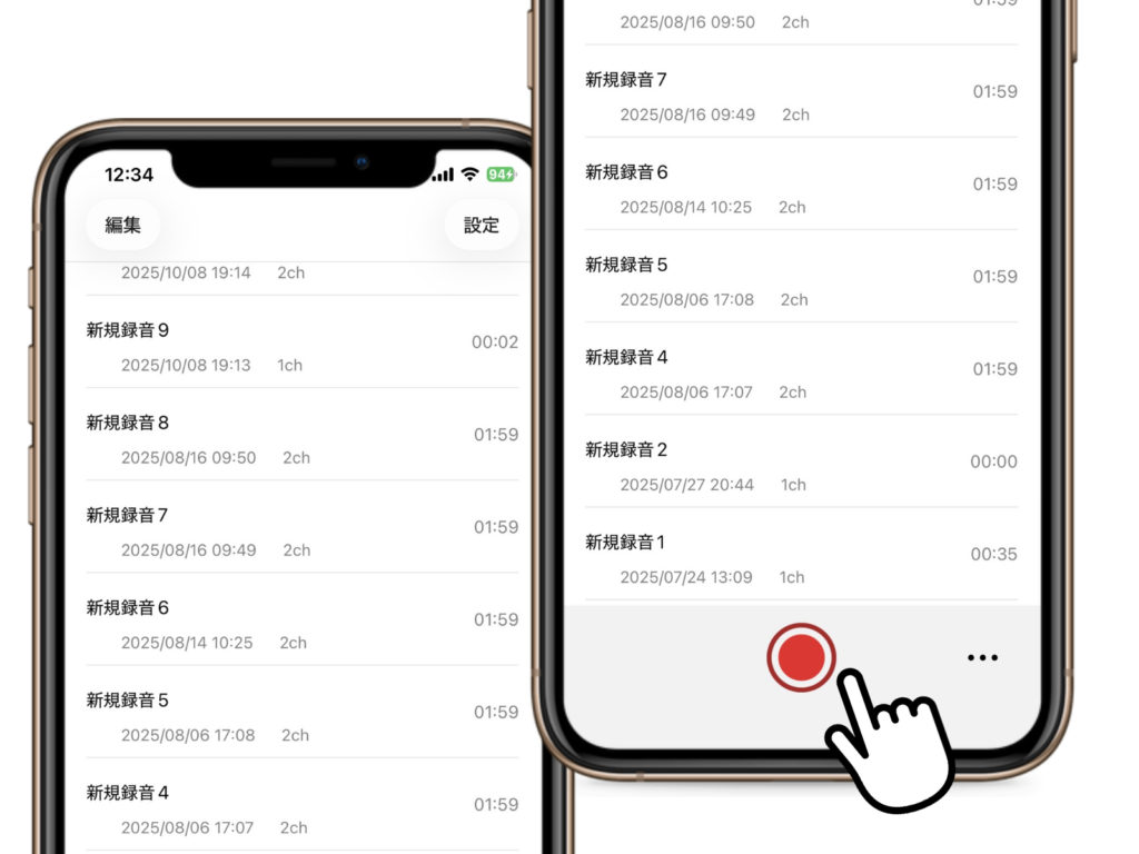 スマホの内蔵マイクを使った1番シンプルな録音方法です。ボイスメモと同じようにご使用いただけます。