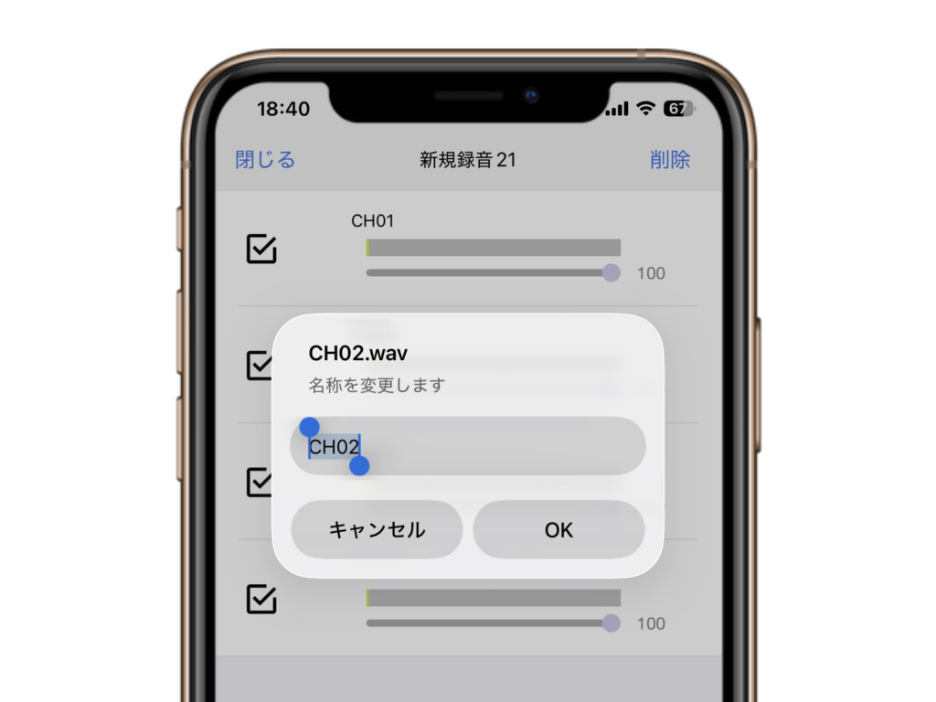 他端末で複数チャンネルのファイルを再生したい場合、iphone内の「MTR」フォルダの中に新規フォルダを作成し、共有された音源を保存してください。